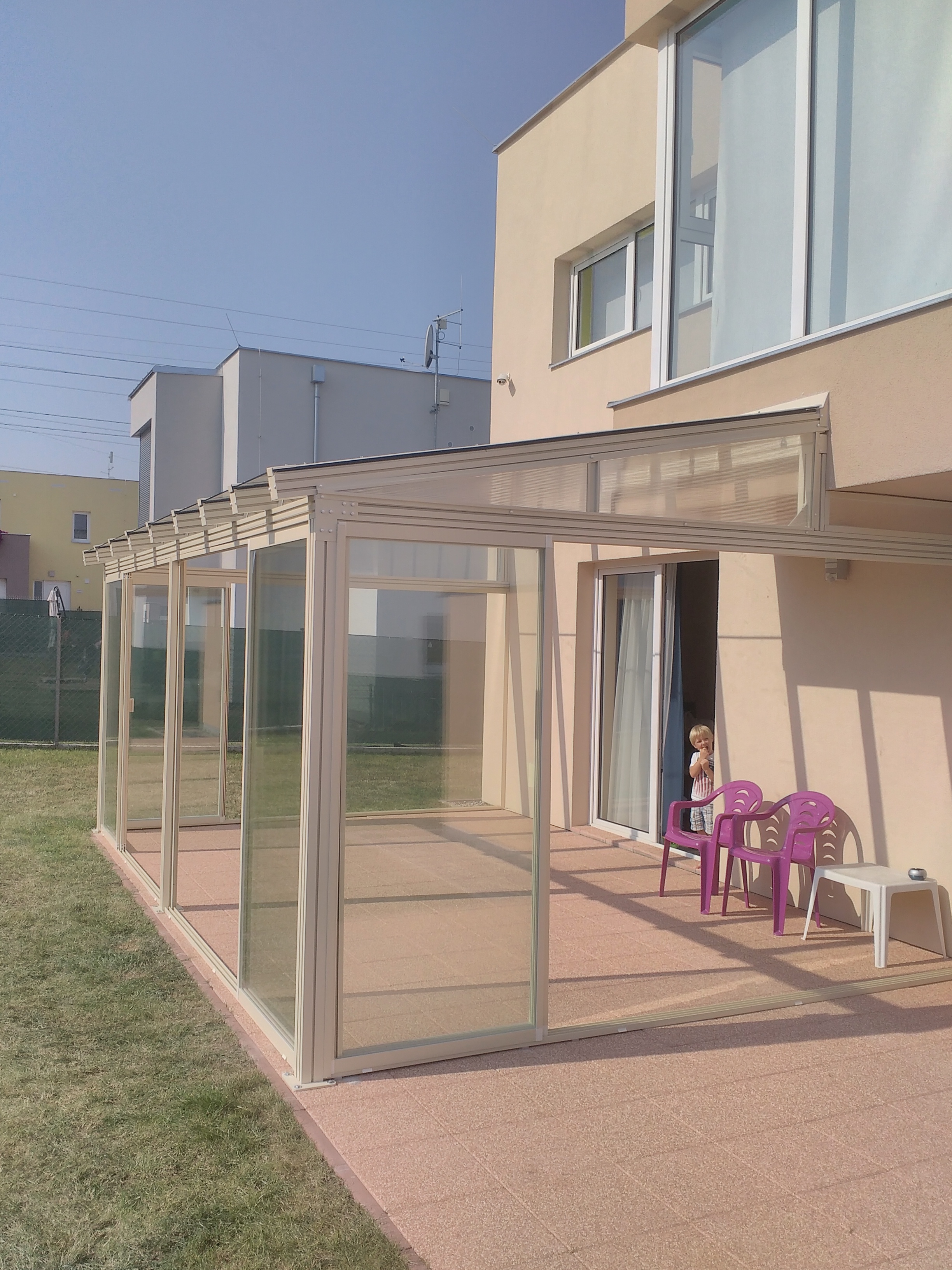 Našim požadavkem však bylo i zastřešení a zasklení a to nejenom z důvodu prodloužení sezony, ale i s ohledem na dosažení většího pocitu soukromí. Na internetu jsme našli spoustu firem. Bohužel všechny se nám snažili prodat i to, co jsme nepotřebovali. MO-BY nám byla doporučena známými, kteří byli s prací této firmy spokojeni a nyní jsme i my. Prostě si užíváme.